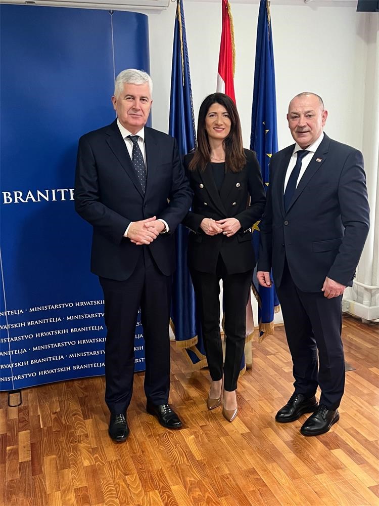 Ministar Medved primio je dopredsjedatelja Čovića i zastupnicu Filipović. I ovom prigodom potvrdili su zajedničku predanost daljnjem jačanju partnerskih odnosa i suradnje između BiH i RH, s posebnim naglaskom na zaštitu prava i dostojanstva hrvatskih branitelja i pripadnika HVO-a